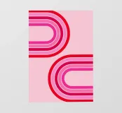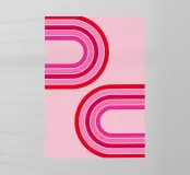 design retrò, arte geometrica, arredamento rosa, curve astratte, combinazione di colori vivaci, stampa grafica moderna
