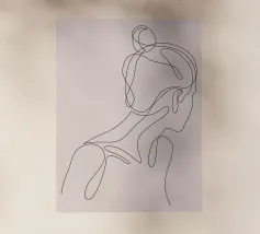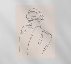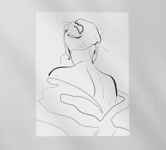 Un disegno minimalista che cattura la grazia tranquilla di una figura femminile vista da dietro. La sua silhouette, disegnata con un tratto continuo, evoca morbidezza, sicurezza e una tacita intimità. Un'elegante rappresentazione della forma femminile attraverso la semplicità e la fluidità.