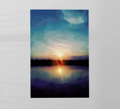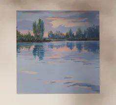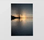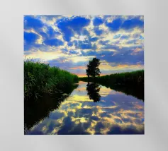 Questa composizione simmetrica è dedicata all'ambiente rilassante dell'acqua, al riflesso della natura e ai colori magici del tramonto in inverno. La luce dorata del sole si riflette sulla superficie dell'acqua. La scena è caratterizzata anche da toni blu scuro e riflessi di luce grigio-argento. Le aree ghiacciate e i dolci movimenti dell'acqua conferiscono al riflesso invernale un effetto astratto.