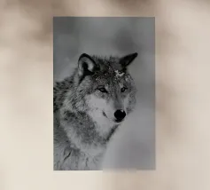 Lupo nero in una foresta invernale innevata - Mistico pellicola backlit