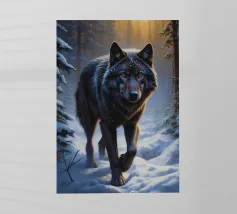 Lupo nero in una foresta invernale innevata - Mistico pellicola backlit