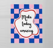Motivo a scacchi blu e rosa con lo slogan "Make today amazing".