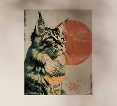 Questo affascinante poster motivazionale combina una fotografia giocosa con un'estetica vintage. L'intensa combinazione di colori bicolore, arancione brillante e viola intenso, ricorda le serigrafie psichedeliche degli anni Sessanta. Il gatto curioso che raggiunge la farfalla monarca simboleggia la gioia infantile e l'esperienza consapevole. Lo slogan "MAKE YOUR DAY" sottolinea il messaggio positivo senza essere invadente. L'elaborazione dell'immagine in formato poster conferisce all'opera una chiarezza grafica. Una dichiarazione sulla gioia di vivere, sulla curiosità e sulla ricerca della felicità nei piccoli momenti - ispiratrice e decorativa.