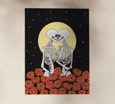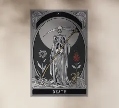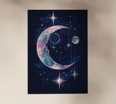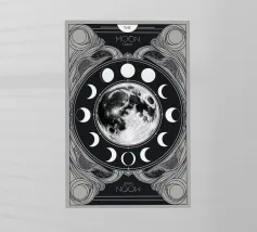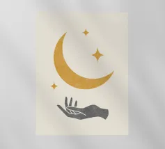 Questa dettagliata opera d'arte mostra una mano ossuta che tiene una delicata mezzaluna, incorniciata da stelle e da una cornice dorata. Lo sfondo scuro fa sembrare la scena una visione notturna, mentre il design di ispirazione vintage con ragnatele e ornamenti conferisce un'estetica mistica, quasi vittoriana. Ideale per gli amanti dei disegni esoterici, astrologici o gotici. Questo quadro crea un'atmosfera tranquilla e magica che invita a sognare o a riflettere.