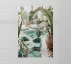 Step into the heart of Marrakech with this captivating photograph of a lush, green riad interior. The vibrant greenery and intricate architectural details create a serene oasis of tranquility, where traditional Moroccan design meets natural beauty. Rich plants cascade around the courtyard pool, their vibrant leaves contrasting with the elegant tiled floors. This image evokes the calm and allure of a Moroccan haven, where the hustle of the city fades away and you're enveloped in a peaceful, verdant escape.