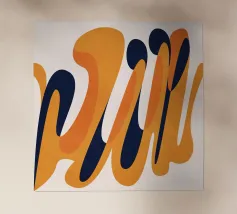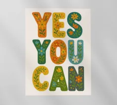 "Il testo 'MAYBE IT IS EASIER THAN YOU think' (Forse è più facile di quanto pensi) è disposto con un carattere giocoso e arrotondato in una calda tonalità arancione, completato da linee stilizzate e vorticose che aggiungono un senso di movimento e ottimismo, il tutto su uno sfondo morbido color crema",