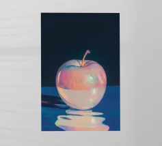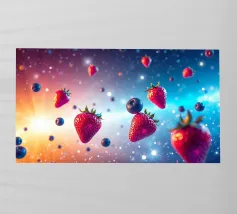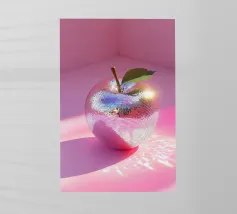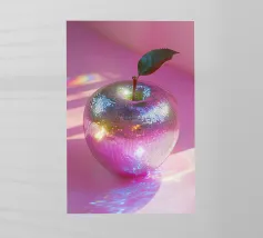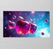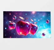 Mele lucide con un vivace disegno cosmico fluttuano su uno sfondo colorato e pieno di luci scintillanti.