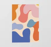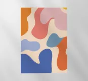 Un'armoniosa composizione astratta di forme organiche sovrapposte in una morbida e calda tavolozza di colori pastello. L'opera d'arte è delicata e moderna, con una qualità ritmica e rilassante.