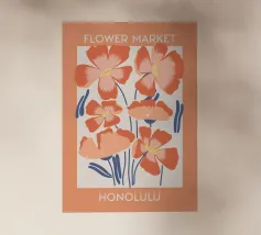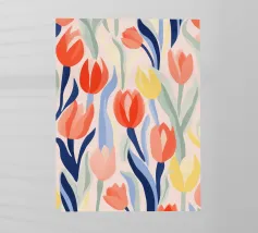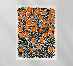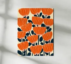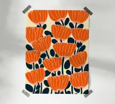 Lasciatevi incantare da questo disegno di papaveri in arancione brillante. La composizione di tendenza dallo stile moderno combina l'eleganza dell'arte tessile scandinava con il fascino senza tempo dell'estetica di metà secolo. La chiara tavolozza di colori, composta da corallo brillante, toni indaco vellutati e beige cremoso, crea un'atmosfera armoniosa che ravviva immediatamente qualsiasi ambiente. Le linee grafiche e la disposizione ritmica dei fiori ricordano i motivi iconici di Marimekko e le forme organiche degli anni Sessanta. Una dichiarazione contemporanea per un design ispirato alla natura.