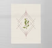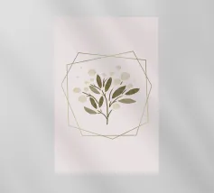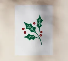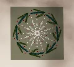 Composizione natalizia minimale, geometria e ramoscello di pianta invernale dipinto in digitale.