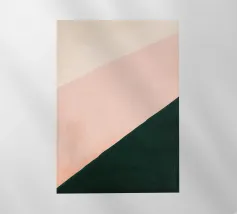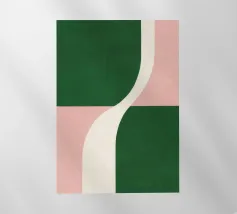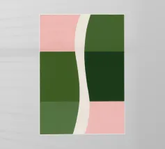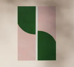 Blocchi di colore minimalisti rosa, verdi e bianchi su uno sfondo color salvia, realizzati con colori acrilici.