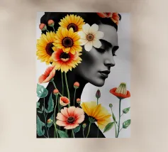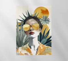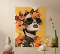 Questo surreale collage autunnale trasforma la fotografia di moda di tendenza in una fantasticheria poetica. Occhiali da sole vintage e labbra scintillanti incontrano calde foglie d'acero, come in un viaggio psichedelico attraverso le stagioni. Ricorda i collage pop art di Richard Hamilton o i montaggi fotografici contemporanei di Sarah Meyohas. Le calde tonalità dorate creano una nostalgica malinconia, mentre gli elementi surreali irradiano una moderna freschezza. Un richiamo visivo degno di Instagram per tutti coloro che amano il romanticismo autunnale con un'estetica alla moda - perfetto per le anime creative e per i collezionisti di icone di stile!