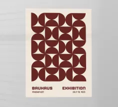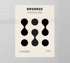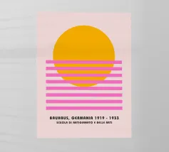 Questo espressivo design Bauhaus combina strisce di colore verticali e triangoli grafici per creare un quadro d'insieme ritmico ed energico. Linee chiare, colori vivaci e un gioco geometrico di movimento e struttura: un'opera d'arte moderna che illuminerà qualsiasi ambiente.