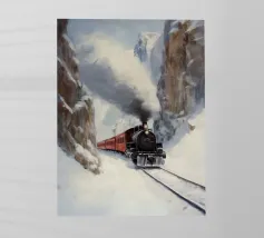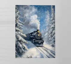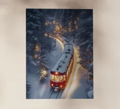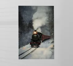 Modello di treno a vapore nella foresta invernale con luci bokeh pellicola backlit