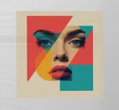 Modello di viso di donna con sovrapposizione di forme geometriche pellicola backlit