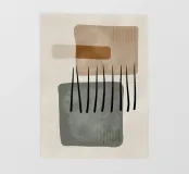 Arte digitale astratta caratterizzata da linee, forme organiche e geometriche con texture e pennellate nere in morbide tonalità terrose di marrone e grigio. Arte moderna per interni essenziali, scandinavi, bohémien e boho. Godetevi l'arte digitale minimalista con forme e linee morbide.