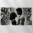 Una coppia è vicina, con le fronti che si toccano, circondata da un'accattivante esposizione di arte monocromatica vorticosa. L'atmosfera trasmette emozioni e legami profondi.