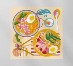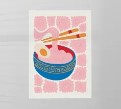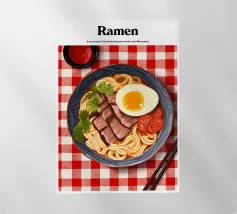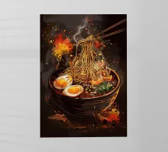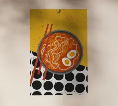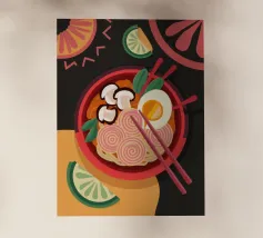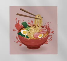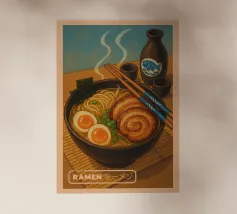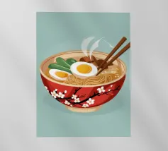 Una confortante ciotola di ramen fumante è illustrata con dettagli meticolosi, dalla lucentezza del brodo all'attento posizionamento dei condimenti. Quest'opera è più di un semplice cibo: è una celebrazione del comfort, del calore e dell'arte rilassante di un pasto ben fatto.