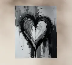 Linee nere marcate, griglie che si intersecano e schizzi d'inchiostro sparsi convergono in un'esplosione centrale di energia che attira lo spettatore verso l'interno. Strati di lavaggi grigio fumo ammorbidiscono la geometria, creando profondità e atmosfera, mentre elementi lineari nitidi impongono ordine al movimento fluido.