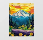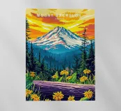 Immerso in calde tonalità crepuscolari, il Monte Bachelor si erge maestoso sopra una fitta foresta di sempreverdi. Le cime innevate contrastano delicatamente con le creste ondulate, mentre il cielo si illumina di tenui colori pastello. Questa opera d'arte originale evoca la pace, la meraviglia e la tranquilla grandezza della natura selvaggia dell'Oregon, ideale per gli amanti della natura e i sognatori.