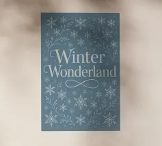 Un delicato disegno invernale di colore blu pastello con soffici scritte fatte a mano che recitano "Let it Snow". I fiocchi di neve e le texture morbide conferiscono all'opera un fascino caldo e confortante, ideale per gli amanti dell'arredamento invernale minimalista.