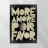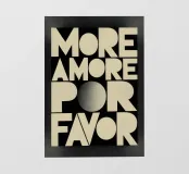 Design tipografico moderno con la scritta "MORE AMORE POR FAVOR" in caratteri decisi e strutturati su sfondo nero. Disposta in verticale, con lettere chiare, beige e color crema che sembrano venature del legno e conferiscono al motivo profondità e carattere.