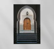 Architettura marocchina. Edificio tradizionale con decorazione marocchina. Fotografia di strada in Marocco.