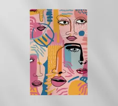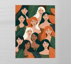 Una griglia colorata con ritratti di nove donne di età ed etnie diverse. L'opera d'arte è una splendida celebrazione della diversità femminile, dell'unità e della natura multiforme della donna.