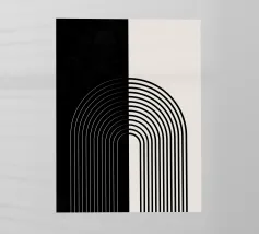 Questo straordinario design proveniente dalla mostra Bauhaus del 1919 combina la geometria minimalista con un'estetica moderna e senza tempo. La precisa disposizione delle linee su uno sfondo nero profondo crea un affascinante effetto tridimensionale. Perfetto per prodotti come murales, magliette, tazze o cuscini, questo motivo porta l'iconico stile Bauhaus nella vostra casa. Un must per gli amanti dell'arte moderna, del design grafico e della decorazione elegante.