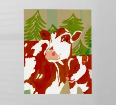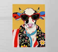 Mucche colorate in un prato di fiori selvatici.