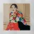 Una donna che indossa un abito floreale colorato siede con grazia, accarezzando un gatto nero, in una scena che è allo stesso tempo elegante e tenera, che celebra la moda, gli animali domestici e i momenti di tranquillità.