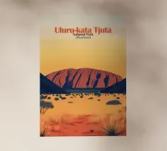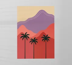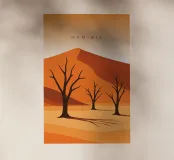 Disegno di viaggio minimalista della Namibia con Deadvlei o Sossusvlei nel Namib. Questo motivo tipico del paesaggio africano è perfetto per tutti i viaggiatori della Namibia che amano le dune di sabbia e i pittoreschi alberi di cammello.