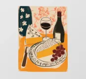 Gioia culinaria in uno stile trendy e artigianale: questa affascinante natura morta celebra l'arte di assaporare. La tavolozza calda - giallo oro brillante, albicocca delicata, petrolio intenso - ricorda i manifesti dei bistrot francesi. Il tratto sciolto dell'inchiostro e i motivi floreali decorativi creano un'eleganza rilassata. Formaggio, vino, uva e stoviglie floreali sono disposti in un inno allo stile di vita mediterraneo. Lo stile pittorico bidimensionale mostra anche influenze del design scandinavo. Un'opera d'arte appetitosa per buongustai e intenditori, perfetta per la cucina, la sala da pranzo o il ristorante.