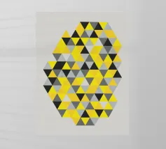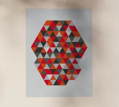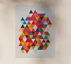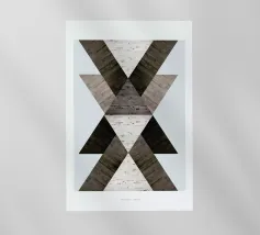 Elegante disegno geometrico a triangolo in blu mare e grigio. Minimalista, moderno e con una raffinata texture retrò.