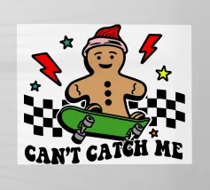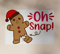 Un allegro personaggio di pan di zenzero che indossa un cappello e una sciarpa da Babbo Natale è affiancato dalla scherzosa frase "OH SNAP" in lettere rosse.