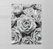 Questa suggestiva fotografia cattura l'elegante semplicità e gli intricati dettagli di un mazzo di rose in bianco e nero. La texture morbida e le curve aggraziate di ogni petalo sono messe in risalto, creando un'opera d'arte sofisticata e senza tempo. La tavolozza monocromatica conferisce un senso di serenità e bellezza classica, rendendola un pezzo perfetto per ogni ambiente.