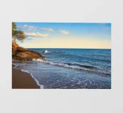 Immaginate una spiaggia dorata con dolci onde che lambiscono la riva mentre il sole radioso riscalda la vostra pelle. In questo paradiso da sogno, potete fuggire dalla vita quotidiana e rilassarvi. Il profumo dell'aria salata del mare e il suono rilassante delle onde vi invitano a rilassarvi completamente. ✨ Disponibile come quadro, pezzo di moda, cuscino e altro ancora.