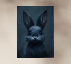 Orecchie di coniglio tristi e occhi afflitti in un ambiente buio pellicola backlit
