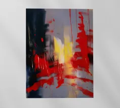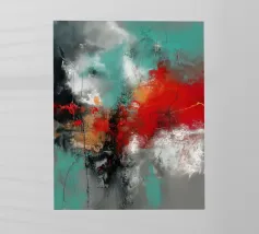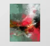 Un dipinto astratto di grande impatto che esplora il contrasto e il movimento attraverso strati di rosso vibrante, verde tenue e bianco incandescente. I segni espressivi e la profondità della texture evocano un senso di intensità e serenità. Ideale per gli spazi contemporanei che abbracciano affermazioni artistiche audaci e profondità emotiva.