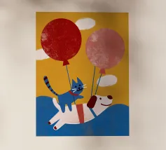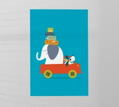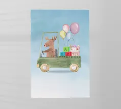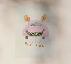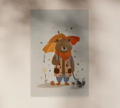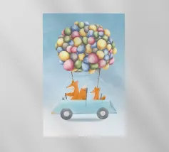 Un'illustrazione stravagante con un allegro orso che guida una macchinina blu sotto la pioggia, accompagnato da palloncini colorati. Lo stile morbido dell'acquerello e gli elementi giocosi la rendono perfetta per la stanza di un bambino o come disegno per abiti e accessori. Questa incantevole scena irradia calore e gioia nonostante il tempo piovoso, simboleggiando lo spirito di avventura. Questo delizioso disegno può essere applicato su felpe con cappuccio, magliette (per bambini e adulti), poster, quaderni, asciugamani, abbigliamento e accessori per bambini.