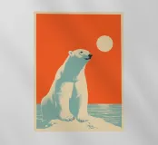 Un maestoso orso polare guarda verso il sole - potente e malinconico allo stesso tempo! Quest'opera impressionante combina l'estetica dei poster vintage con la consapevolezza ambientale contemporanea. Il potente contrasto tra arancione e turchese ricorda i manifesti di viaggio degli anni Cinquanta e le iconiche serigrafie di Shepard Fairey. La tavolozza di colori ridotta e la rappresentazione grafica conferiscono una dignità senza tempo all'animale in pericolo. Ispirata ai manifesti della WPA, l'opera crea un'atmosfera inquietante tra bellezza e vulnerabilità. Una dichiarazione, anche sul cambiamento climatico e sulla conservazione della natura, convincente e toccante.