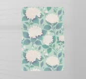 Grazioso motivo floreale con fiori di ortensia bianchi e foglie verdi su uno sfondo verde salvia.