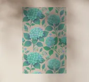Bellissimo motivo floreale di ortensie con fiori di ortensia verde salvia e foglie verdi, su uno sfondo color pesca.