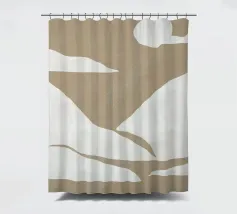 Forme astratte nei toni del beige creano una composizione minimalista su uno sfondo chiaro. Il disegno presenta forme geometriche irregolari che suggeriscono un paesaggio naturale.