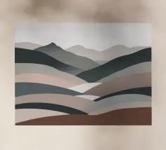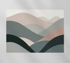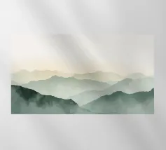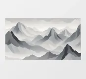 Un'affascinante catena montuosa appare nei toni del grigio, evidenziando le cime e le valli. Le morbide transizioni tra i toni creano un'atmosfera serena e misteriosa.