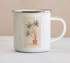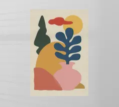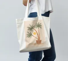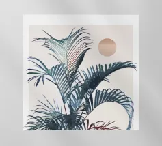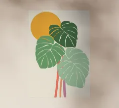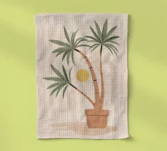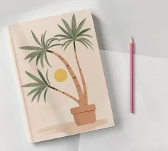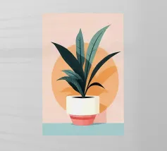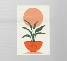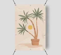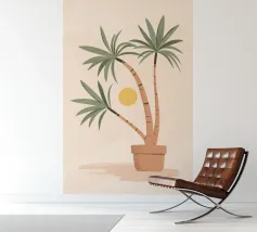 Illustrazione minimalista e chic di una palma in vaso su un morbido sfondo beige. Le linee pulite e la composizione semplice ne fanno un'opera d'arte botanica elegante e senza tempo.