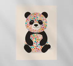 Illustrazione colorata di un simpatico panda con un ramo di bambù. Il motivo giocoso combina cordialità, calma e aree di colore moderne - ideale per i fan dei panda e per i disegni creativi di animali.