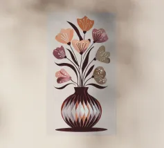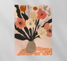 Create un'atmosfera invitante e accogliente con "Papaveri di terra - Fiori rustici Boho". Questa affascinante illustrazione botanica presenta fiori di papavero dalle tonalità terrose di terracotta, ocra e rosa polveroso, disposti con cura in un vaso rustico a fantasia. Mescolando il calore bohémien con lo stile moderno di metà secolo, quest'opera d'arte dona un tocco di eleganza naturale e di fascino contemporaneo a qualsiasi ambiente, perfetto per interni eclettici di ispirazione bohémien o per pareti di gallerie moderne.