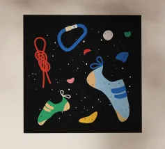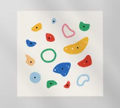 Parete di arrampicata/bouldering colorata con diverse prese per l'arrampicata. Io stessa sono un'arrampicatrice, quindi questo progetto viene dal mio cuore!