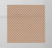A repetitive geometric pattern composed of white shapes is set against a brown background, creating a uniform and rhythmic design. The arrangement of shapes forms a continuous and seamless visual effect.